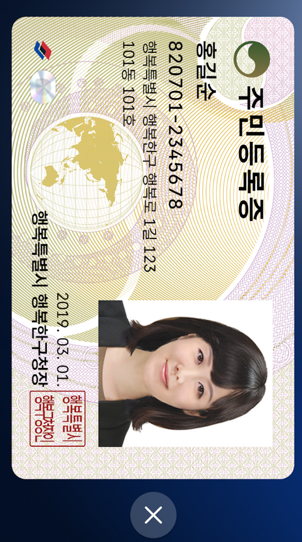- 스마트폰으로 간편한 신원 확인 (실물 신분증 없이 사용 가능)