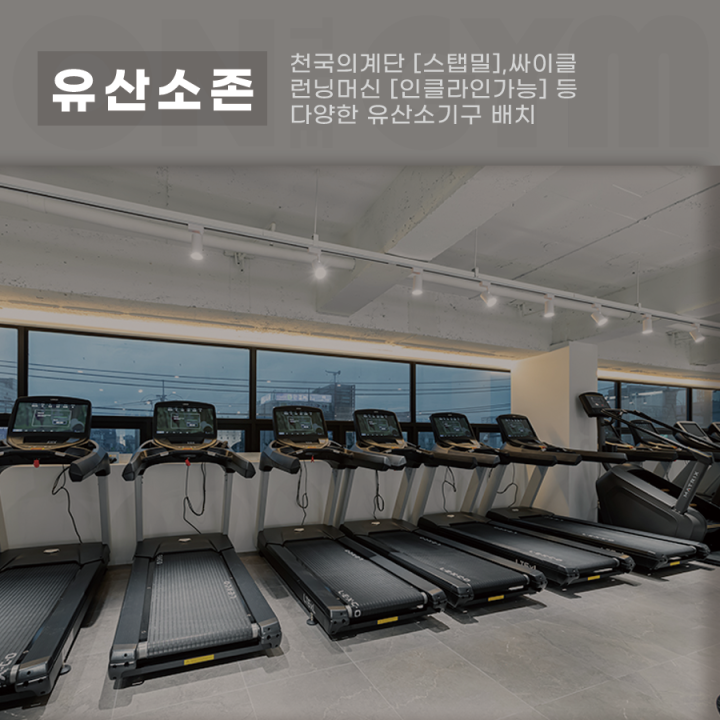 유산소 존: 러닝머신, 사이클, 스텝밀 등 유산소 운동 기구 완비