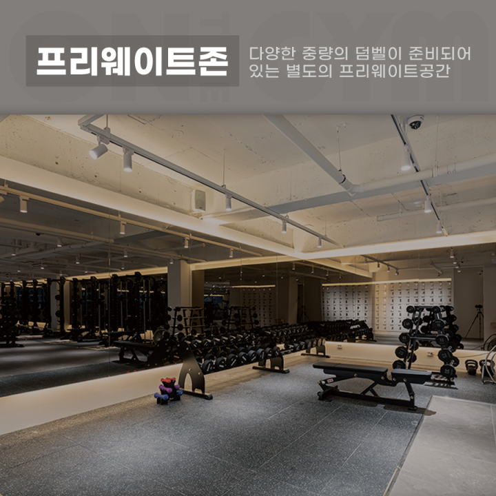 프리웨이트 존: 벤치프레스, 스쿼트랙, 덤벨(최대 중량까지 구비)
