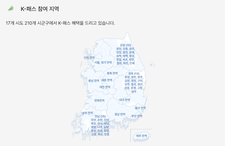 ✅ 지자체별 추가 혜택 (경기, 인천, 부산 등 맞춤형 K-pass 도입 중)