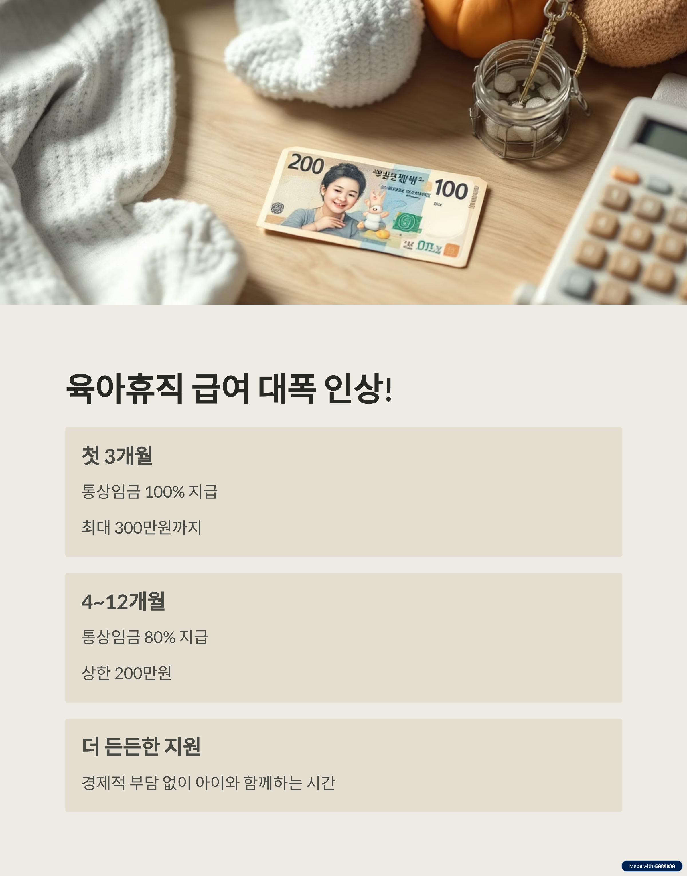 2025년부터는 육아휴직 첫 3개월 급여 비율이 최대 100%로 인상되었습니다.